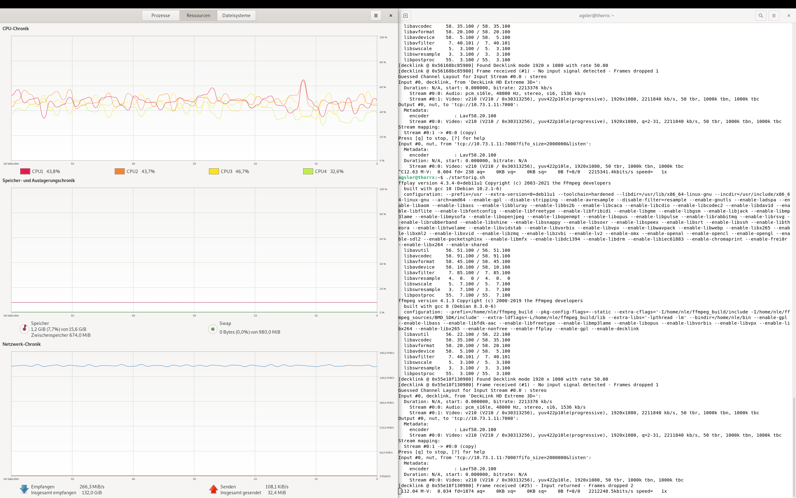 Also wählten wir eine Kombination aus vorhandenen Blackmagic-Design DeckLink Karten und ffmpeg um das für uns übliche HD-SDI Signal in Netzwerkpakete zu wandeln: