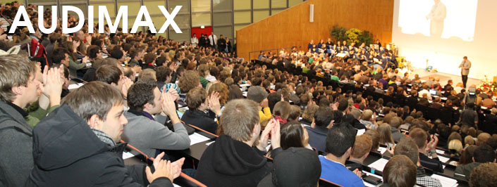 Die erste offizielle Veranstaltung im modernisierten AudiMax war die Begrüßung der Erstsemester durch den Präsidenten der TU. Die ags hat diese und weitere Reden in zwei entfernte Hörsäle übertragen, damit über 2000 Studenten der Veranstaltung folgen konnten.