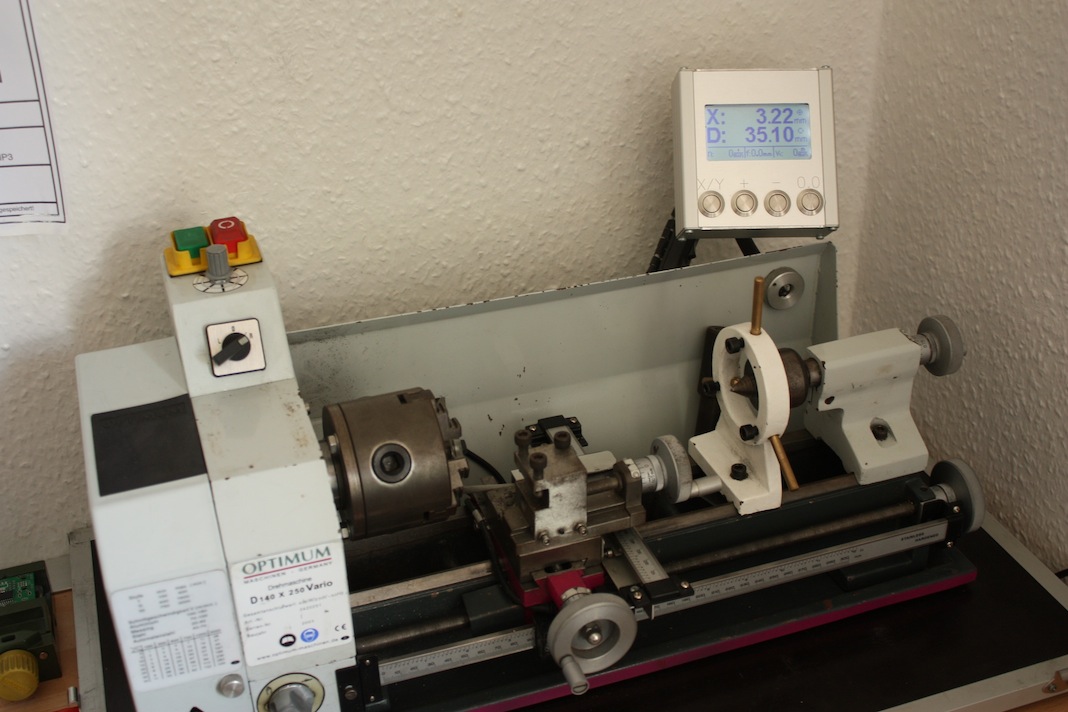 Jeder der schon mal an einer Drehbank gearbeitet hat, kennt das Problem; Man verzählt sich bei der Anzahl der Umdrehungen am Handrad oder vertraut den Skalenringen aufgrund des Umkehrspiels der Spindeln nicht so hundertprozentig und man muss den Drehvorgang häufig unterbrechen, da man sich nicht mehr sicher mit der Maßhaltigkeit des Werkstücks ist, um nachzumessen.