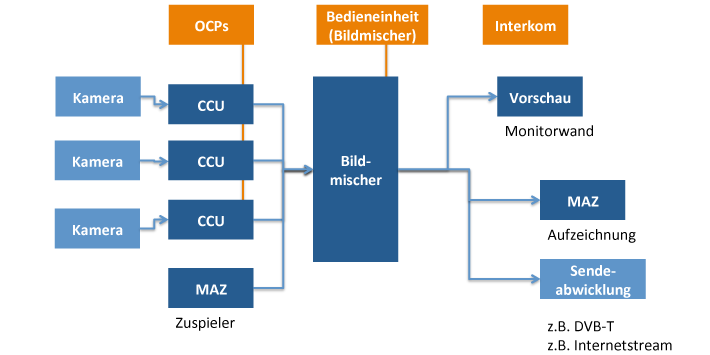 Die Bildsignale laufen von den Fernsehkameras durch verschiedene Geräte, bevor sie tatsächlich live gesendet werden können. Die einzelnen Geräte werden nachfolgend beschrieben.